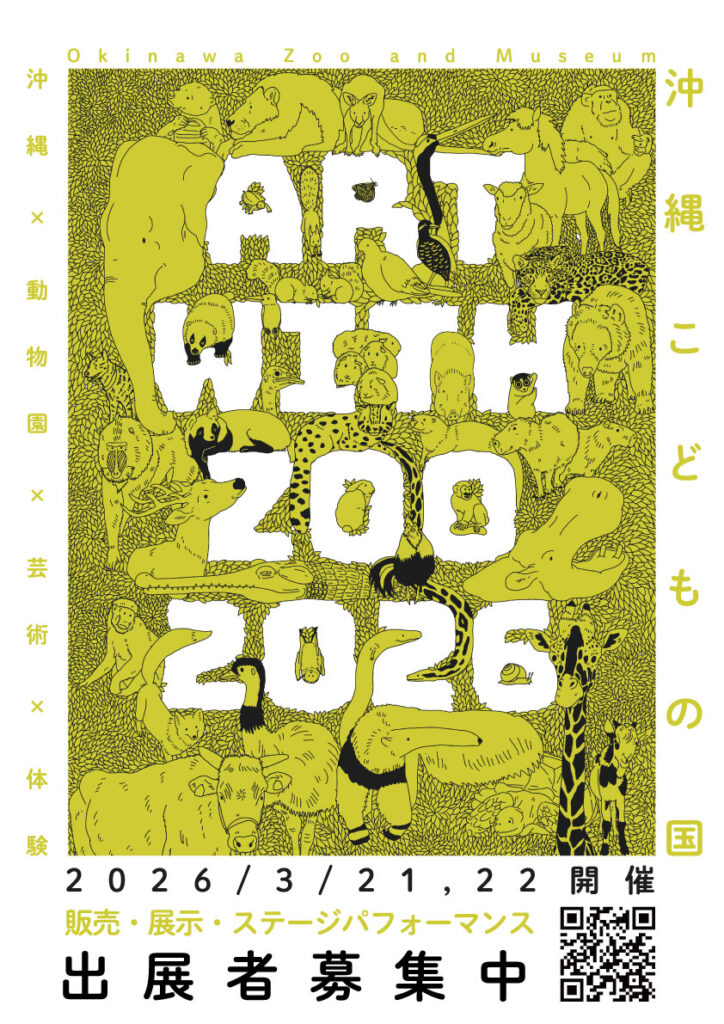2026年3月21(土)・22日(日)に開催されるART with ZOO 2026に出展してくださる方を募集します。ART with ZOOは『沖縄こどもの国の動物たち』『沖縄の自然』の2大テーマをもとに、たくさんの出展者さんが魅力あふれる作品を販売・展示するイベントです 。