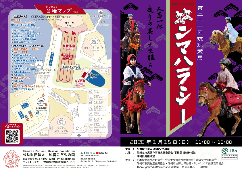〇後援:Thoroughbred Aftercare and Welfare・日本動物園水族館協会・全国乗馬倶楽部振興協会・沖縄県博物館協会・ヨナグニウマ保護活用協会・南風花食品・沖縄市立郷土博物館・沖縄市観光物産振興協会