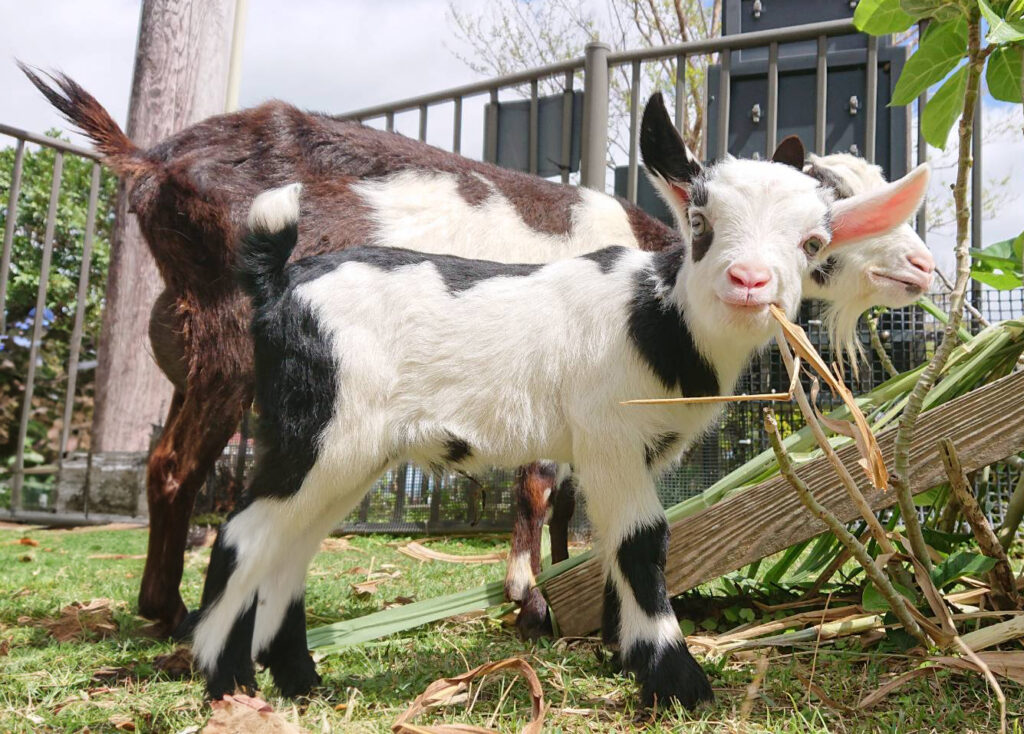 沖縄こどもの国では琉球弧の在来家畜の保存のため、地域と連携しながら在来家畜である島ヤギの繁殖につとめています。この度、カナサンに元気な♂の赤ちゃんが誕生したことをご報告いたします。23日の朝の早いうちからカナサンに陣痛が起こり、9時半頃に無事出産しました。現在は、天気の良い日は展示場で親子の様子を観察することができます。赤ちゃんの名前も募集中ですので、島ヤギ舎にてぜひご投票ください。