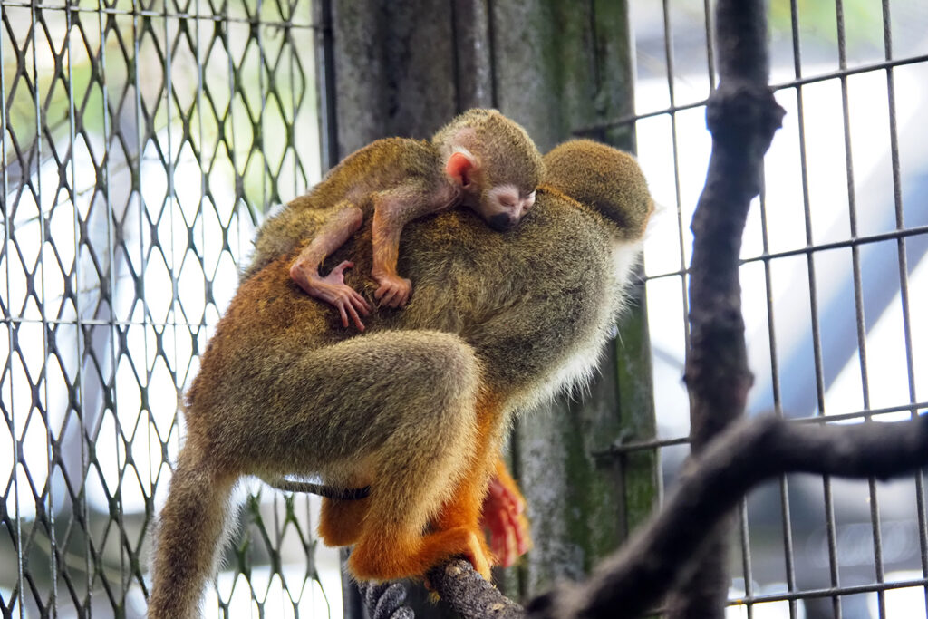 沖縄こどもの国では、3年ぶりにコモンリスザルの赤ちゃんが誕生しました。母子ともに落ち着いているので、他のサルたちといっしょに展示場で親子の様子を観察することができます。赤ちゃんを入れて沖縄こどもの国のリスザルの群れは全7頭となりました。そして、ヤクシマザルの赤ちゃん2頭の誕生に引き続いての誕生となり、沖縄こどもの国ではサルのベビーラッシュが到来しています。