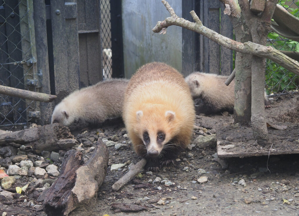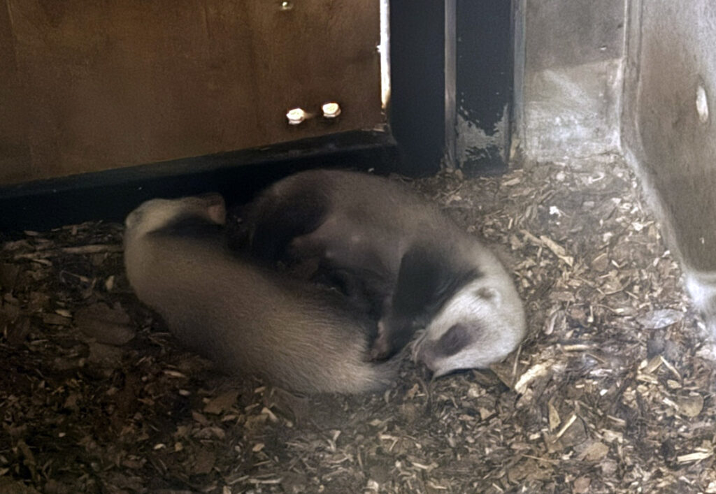 ニホンアナグマの赤ちゃんが2頭、誕生しました。母親のレイはこれまでにも出産は確認されたことがありましたが、うまく育てることができませんでした。今回は初めて、赤ちゃんたちが順調に成長しています!寝室内の巣箱で出産した後、8月初旬には巣穴から出てくるようになり、姿を見せてくれるようになりました。