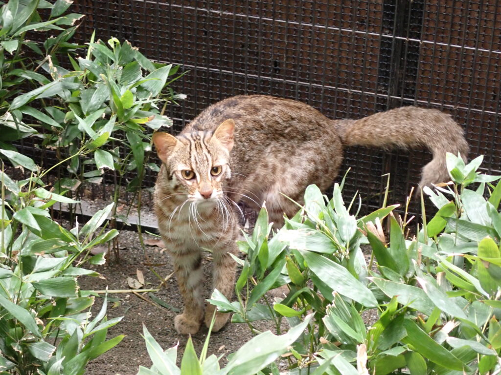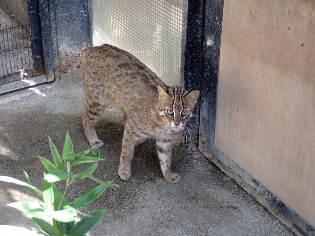 沖縄こどもの国では現在、ツシマヤマネコの「さご」を飼育しています。アムールヤマネコは、東南アジアから東アジアにかけて広く分布するベンガルヤマネコの亜種で、ツシマヤマネコとは同じ系統に属しながら、異なる地域の環境で暮らしてきたヤマネコです。