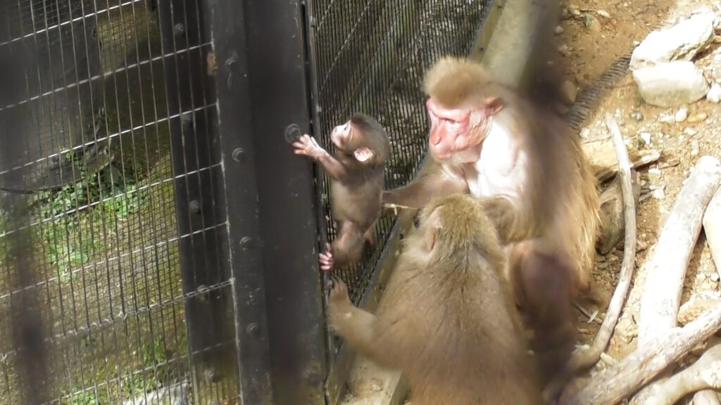 10/26の朝、ヤクシマザル舎に入ってみるとちひろが子どもを抱いていました。ちひろは他の個体のこどもの世話もしようとするおせっかい?さんなので今年の初夏に産まれたあぽろかまどらーを抱っこしているのかと思ったら…。あぽろとまどらーは大人たちと同じ毛の色になっているのに抱いている子の毛が黒い…。サルの研究者もびっくり、まさかの10月末の出産です。去年から今年にかけての気温の変化などで発情期が延びたのかもしれません。時季外れの出産のため、親子の様子を長めに確認していたため報告が遅れてしまいましたが、ちひろは出産5回目のベテラン母ちゃん!子育てに関しては安心して見ていられます。こどもはもうちひろから離れて歩き回ったり、ひまわりお姉ちゃんに遊んでもらったりとすくすくと成長しています。ちひろといえばこどもの髪形をツーブロックにする習慣?があり、こどもの今後の髪形にも注目です。ちひろ、出産おめでとう!(なかむら飼育員)