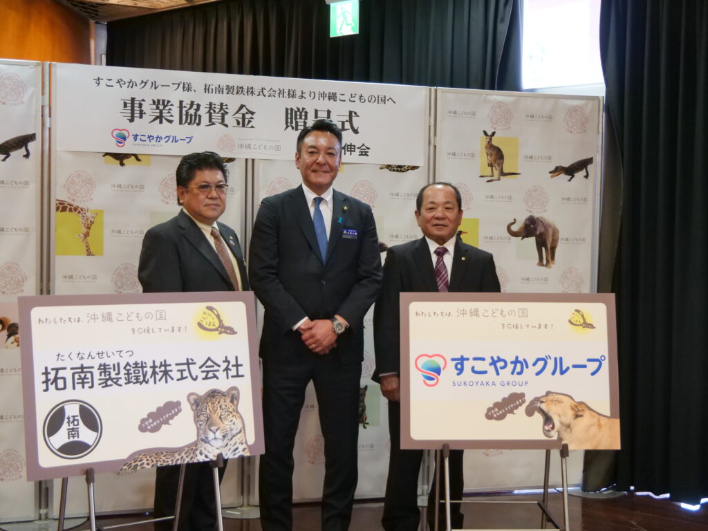 すこやかグループ様、拓南製鐵株式会社様より沖縄こどもの国へ。事業協賛金の贈呈式を行いました。